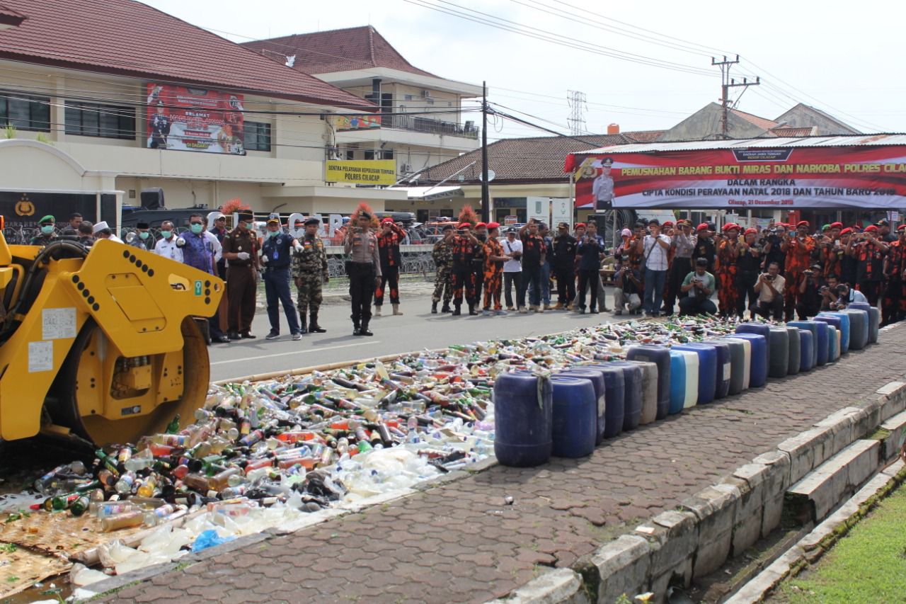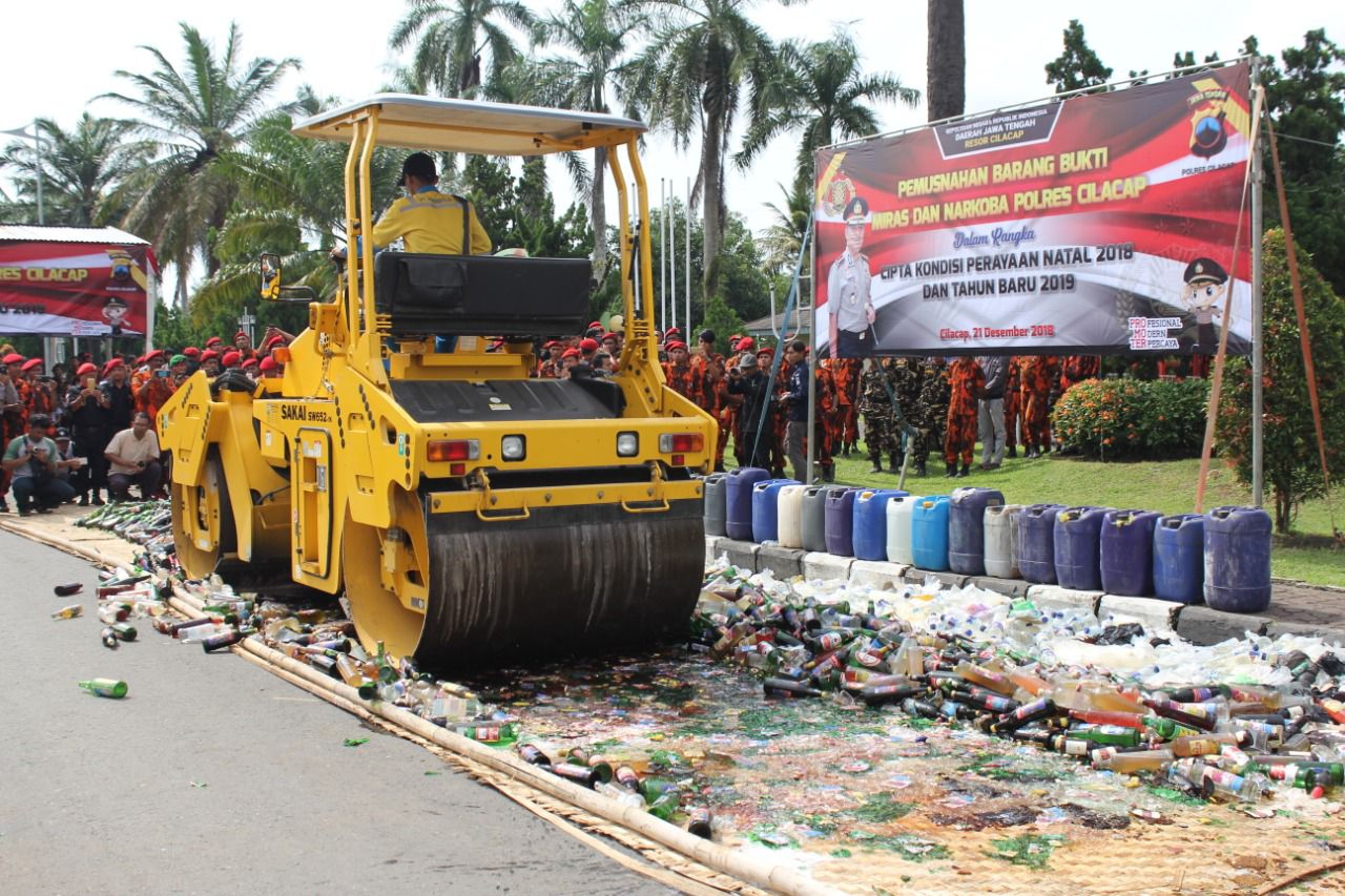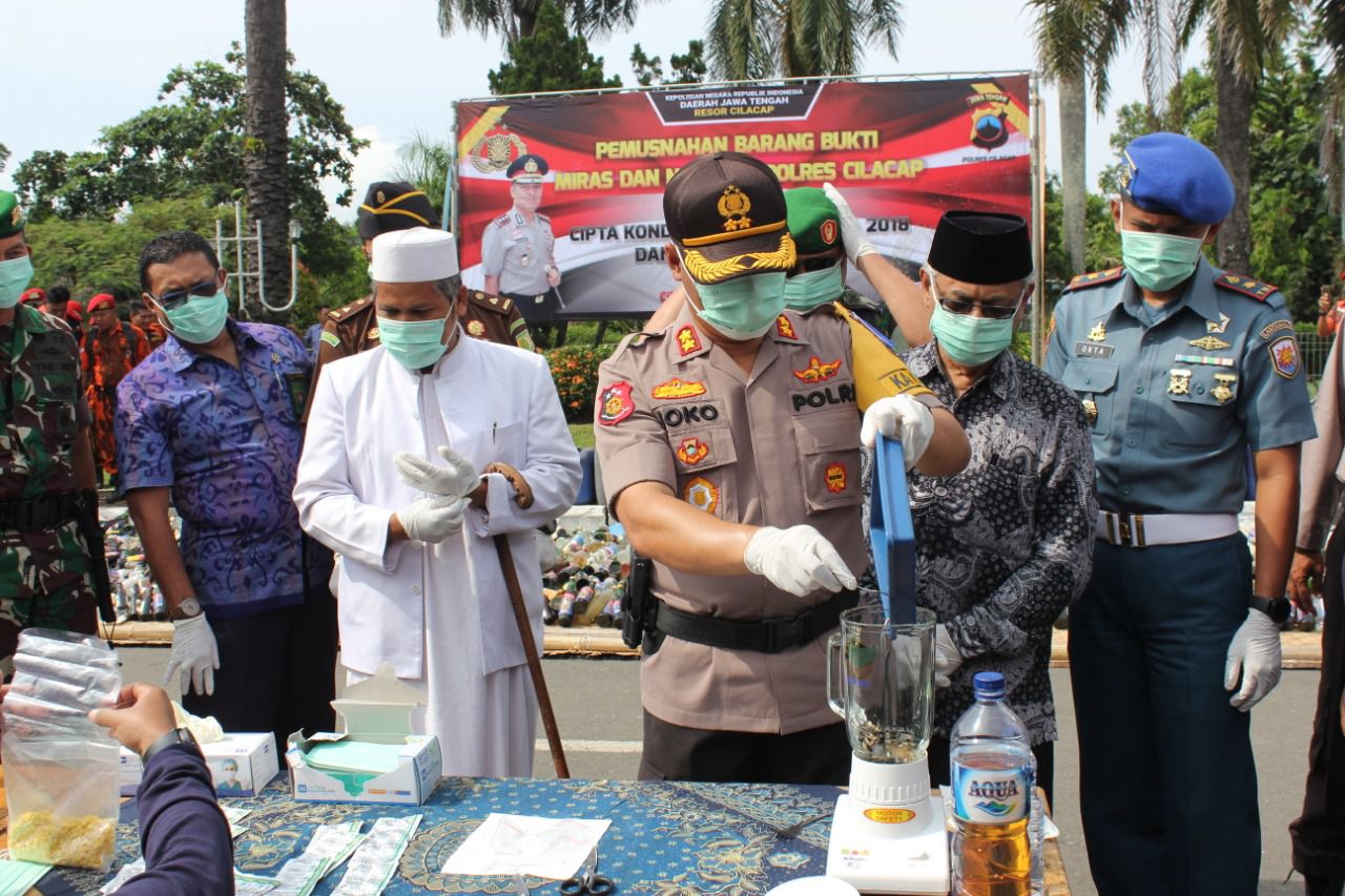 Kapolres Cilacap AKBP Djoko Julianto mengatakan, hari ini jajaran Polres Cilacap melakukan pemusnahan miras dan narkoba, merupakan kegiatan cipta kondisi dalam giat kepolisian bekerja sama dengan masyarakat menjelang Natal 2018 dan Tahun Baru 2019.