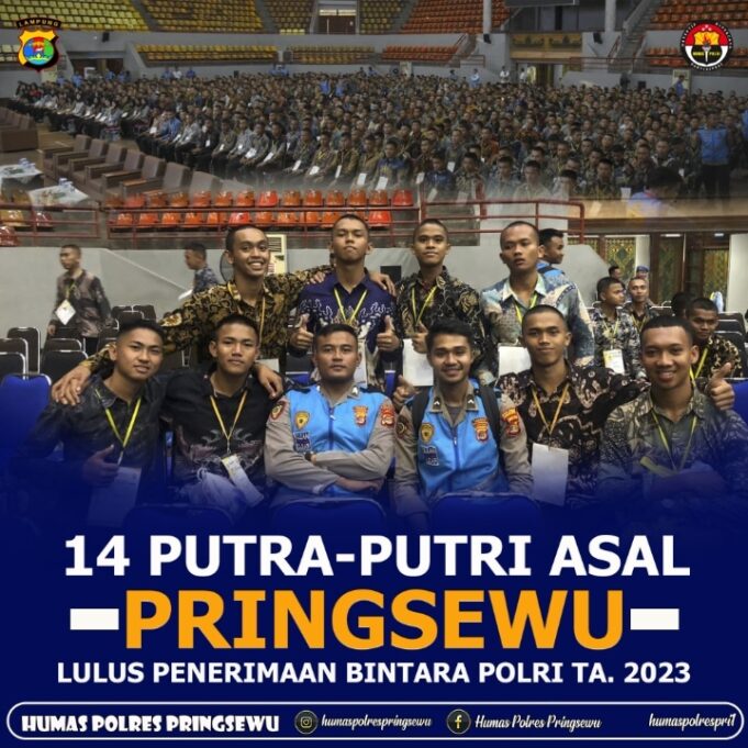Pringsewu, LAMPUNG – Maspolin.id|| Empat Belas Putra Putri terbaik Kabupaten Pringsewu, Lampung, dinyatakan lulus seleksi penerimaan Bintara Polri Polda Lampung tahun 2023. Belasan peserta itu, dinyatakan lulus setelah mengikuti sidang terbuka kelulusan akhir penerimaan Polri di GSG Universitas Lampung pada Rabu (19/7/2023) lalu.