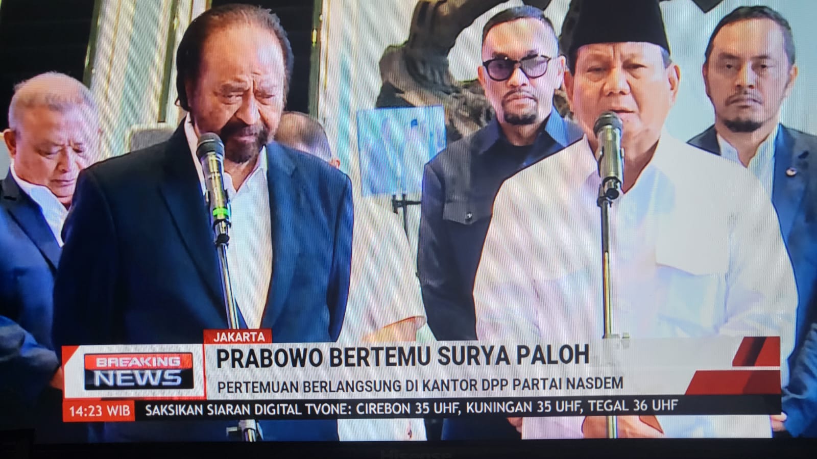 JAKARTA – Maspolin.id|| Baru saja pertemuan antara Presiden terpilih Prabowo Subianto dengan Ketua Umum Partai Nasdem Surya Paloh berlangsung di Nasdem Tower, Jumat siang ini (22/3/2024).