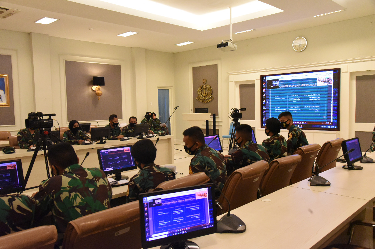 Dalam pembekalan yang berlangsung virtual melalui sambungan video conference ini, Kadissenlekal berada di Mabesal Jakarta didampingi para pejabat Dissenlekal, sementara itu Taruna dan Taruni AAL Korps Elektronika berada di Rupatama Gd. R. Soebijakto, Mako AAL, Surabaya.