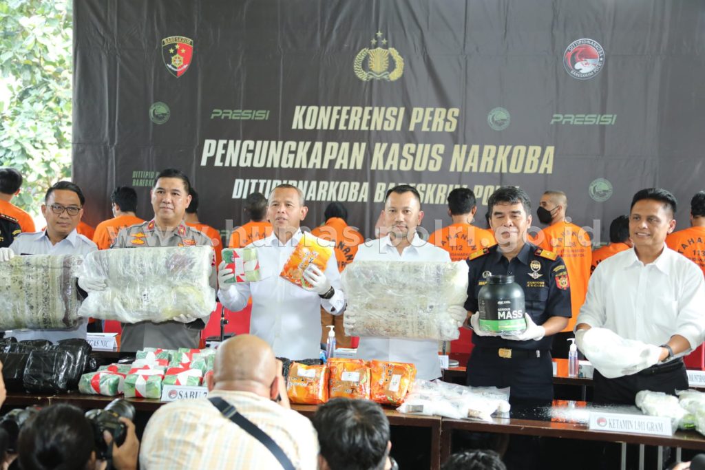 JAKARTA – Maspolin.id|| Direktorat Tindak Pidana Narkoba (Dittipidnarkoba) Bareskrim Polri berhasil mengungkap tujuh kasus peredaran gelap narkoba yang terjadi di Batam, Medan, hingga Riau. Sebanyak 75 kg narkotika jenis sabu-sabu, ekstasi, hingga obat sediaan farmasi, yakni ketamin, diamankan.