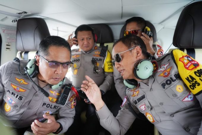 Cikampek, JAWA BARAT – Maspolin.id|| Kepala Korps Lalu Lintas (Kakorlantas) Polri Irjen Pol Aan Suhanan, didampingi Kabag Ops Korlantas Polri Kombes Pol Aries Syahbudin, melakukan patroli udara untuk memantau pergerakan arus lalu lintas pada arus balik libur Natal 2024 dan Tahun Baru 2025, Rabu (1/1/2025).