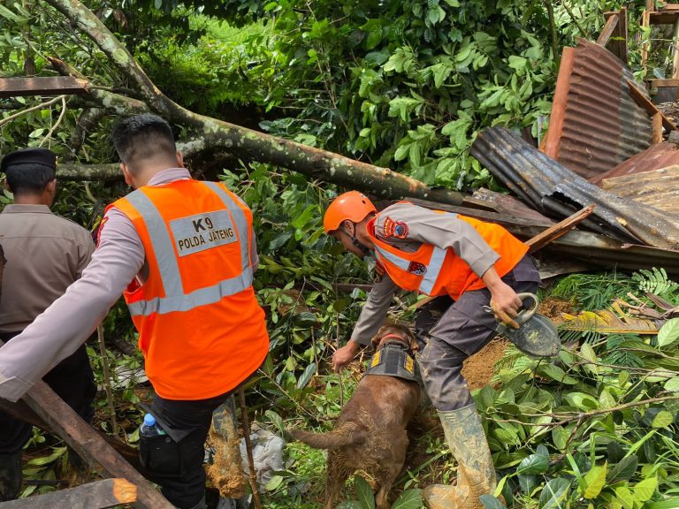Dalam upaya pencarian korban, Polda Jateng mengerahkan unit K9 dari Ditsabhara, Tiga anjing pelacak dilibatkan untuk membantu menemukan korban di tengah material longsor yang menutupi kawasan tersebut.