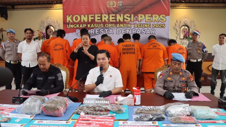 DENPASAR, BALI – Maspolin.id|| Satuan Reserse Narkoba (Sat Resnarkoba) Polresta Denpasar dalam Operasi Antik Agung 2025 yang berlangsung selama 16 hari berhasil mengamankan 35 pelaku penyalahgunaan narkoba. Dari jumlah tersebut, 33 pelaku adalah laki-laki dan 2 lainnya perempuan. Operasi ini mengungkap total 30 kasus, dengan 14 di antaranya merupakan target operasi, sementara 16 lainnya merupakan kasus non-operasi.