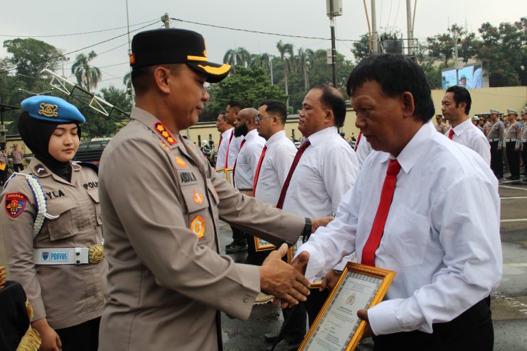 Depok – Maspolin.id|| Kapolres Metro Depok, Kombes Pol Abdul Waras S.I.K, memimpin upacara pemberian penghargaan kepada anggota berprestasi di lingkungan Polres Metro Depok.