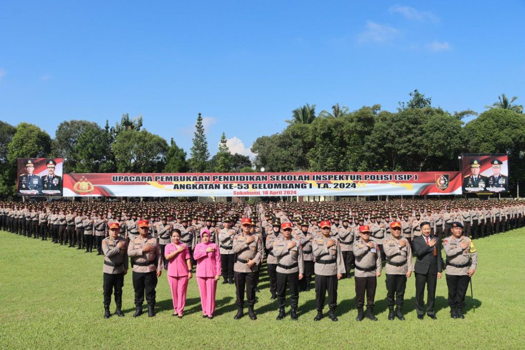 Sukabumi – Maspolin.id|| Upacara Pembukaan Pendidikan Sekolah Inspektur Polisi (SIP) atau sekolah perwira Angkatan Ke-53 Gelombang I Tahun Anggaran 2024 pagi ini digelar di Lapang Soetadi Ronodipuro, Setukpa Lemdiklat Polri. Acara ini dihadiri oleh Sekretaris Daerah Kota Sukabumi, Dida Sembada, unsur Forkompimda Kota Sukabumi, dan diikuti oleh sekitar 2.067 calon perwira yang akan mengikuti pendidikan dan pelatihan selama 4 bulan.