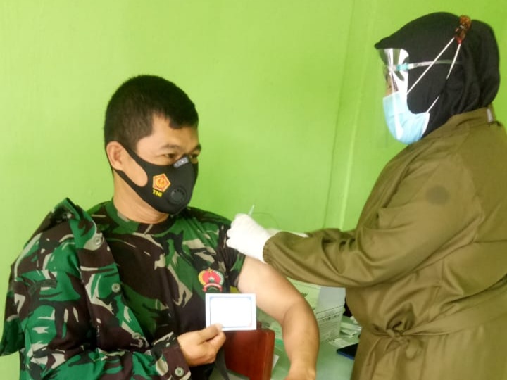 Maspolin.id, Cilacap – Anggota Kodim 0703/Cilacap dan Jajarannya yang tergabung dalam Satgas pendampingan tracer Covid-19 ikuti program Vaksinasi Sinovak yang di gelar di Rumkitban 04.08.01 Cilacap, Jln. Katamso, Kelurahan Sidanegara Kecamatan Cilacap Tengah, Selasa (2/3/2021).