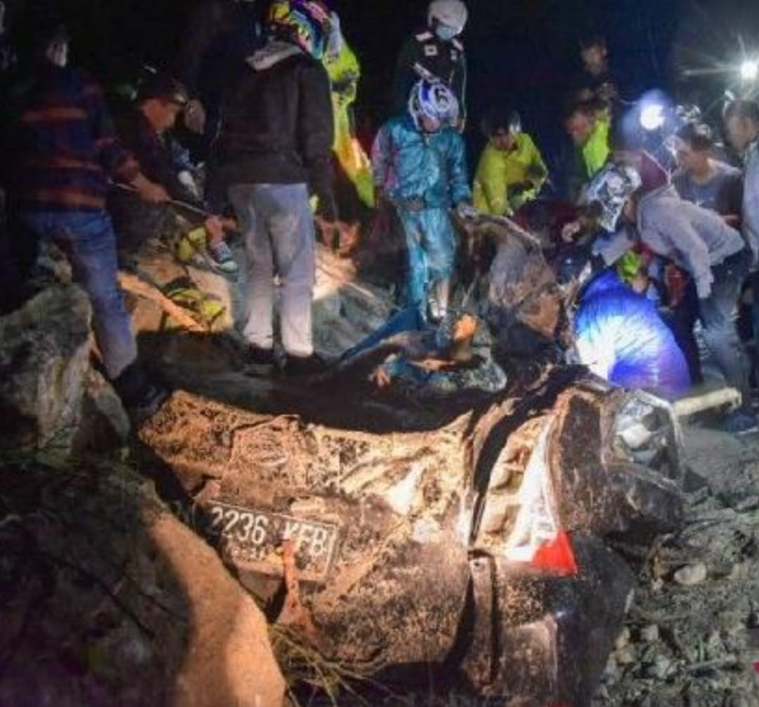 Ketiga korban yang tewas itu adalah penumpang mobil Xenia plat B 2236 KFB yang ringsek rata dengan aspal tertimpa longsoran material tanah dan bebatuan tersebut.