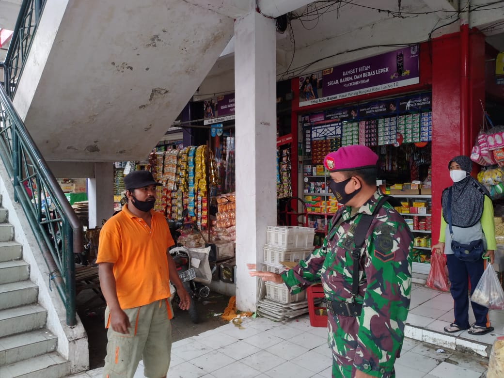 MASPOLIN || Surabaya,-–Lihat Aksi santun namun tetap tegas, saat para prajurit TNI AL dari Yonmarhanlan V, memberikan arahan kepada masyarakat yang ditemukan tidak disiplin dalam menerapkan protokol kesehatan di tempat umum, salah satunya yaitu di wilayah Pacar Keling, Surabaya Timur.