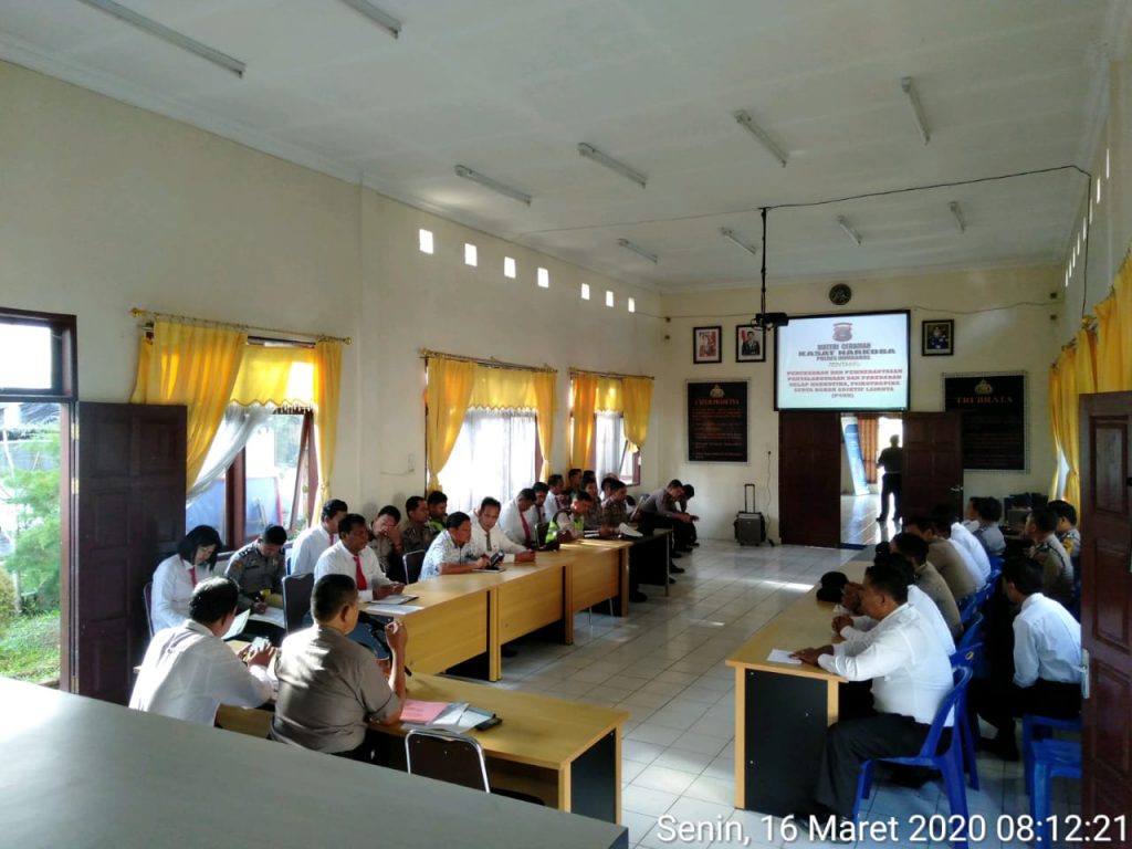 Kegiatan dilaksanakan di Aula D.P Silitonga Dan Depan Ruangan Satresnarkoba Polres Humbang Hasundutan. Waktu Pelaksanaan dimulai Pukul 09:00 wib sampai dengan Selesai, Senin 16 Maret 2020.