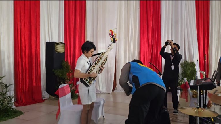 Calon taruni lainnya, yakni Regita Keysia, memainkan alat musik petik tradisional suku Dayak yakni Sape. Regita merupakan calon taruni asal pengiriman Polda Kalimantan Timur.