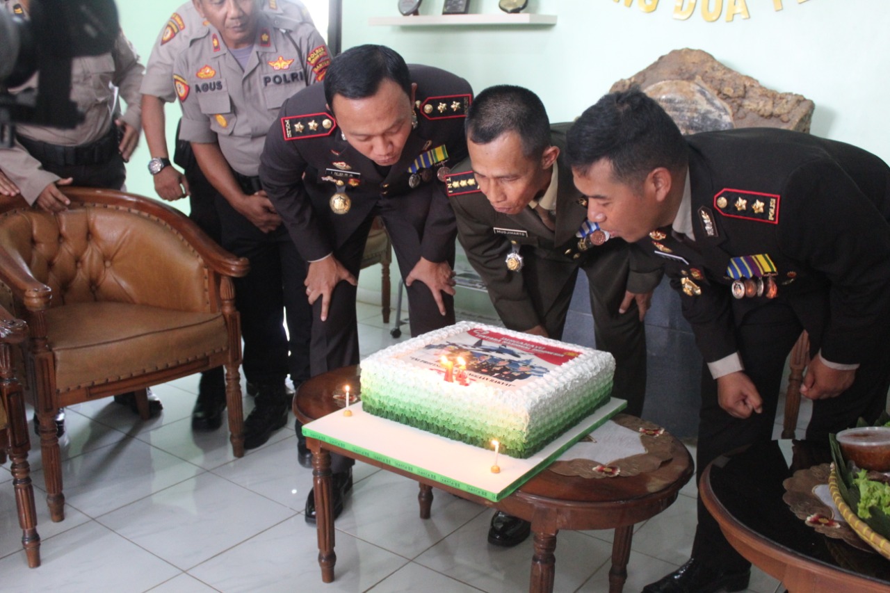 Sebagai kejutan, Kapolres juga membawa sejumlah tumpeng dan kue tartar ke Markas Kodim 0602/ Serang.