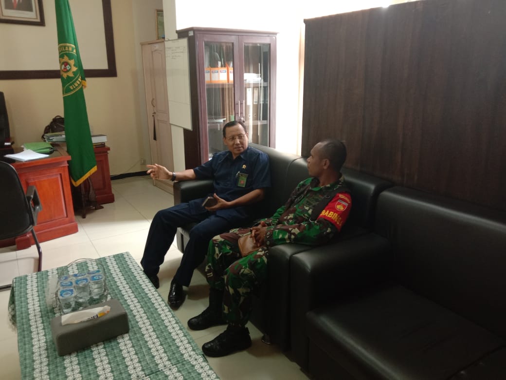 Surakarta,Maspolin.id – Babinsa Kelurahan Serengan Koramil 03 Serengan Kodim 0735/Surakarta Sertu E Lau We, melaksanakan komsos dengan Ketua Pengadilan Agama Surakarta Dr.Mukhlas S.H.M. HK, di Kantor Pengadilan Agama Kota Surakarta jln.Veteran nomor 272 Kec Serengan kota Surakarta, (4/12).