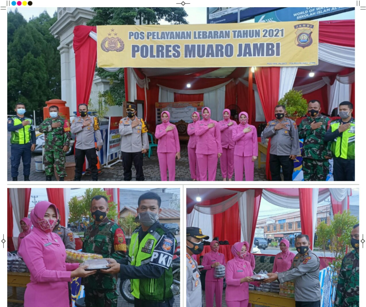 Didampingi Kapolres Muaro Jambi, AKBP Ardiyanto, dan Kapolsek Jaluko Ipda Irwan, Ketua Bhayangkari memberikan bingkisan kepada seluruh anggota TNI-POLRI yang bertugas di Pos Yan Jaluko.