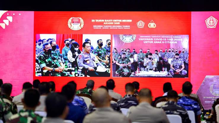 BOGOR – Maspolin.id|| Kapolri Jenderal Listyo Sigit Prabowo menghadiri acara puncak 20 tahun bakti untuk negeri alumni Akabri 2001 atau Dwipa Arya yang menggelar kegiatan vaksinasi massal, pemberian bantuan sosial, pembangunan dan renovasi 11 tempat ibadah di Sentul International Convention Center (SICC), Kabupaten Bogor, Jawa Barat, Selasa (28/12).