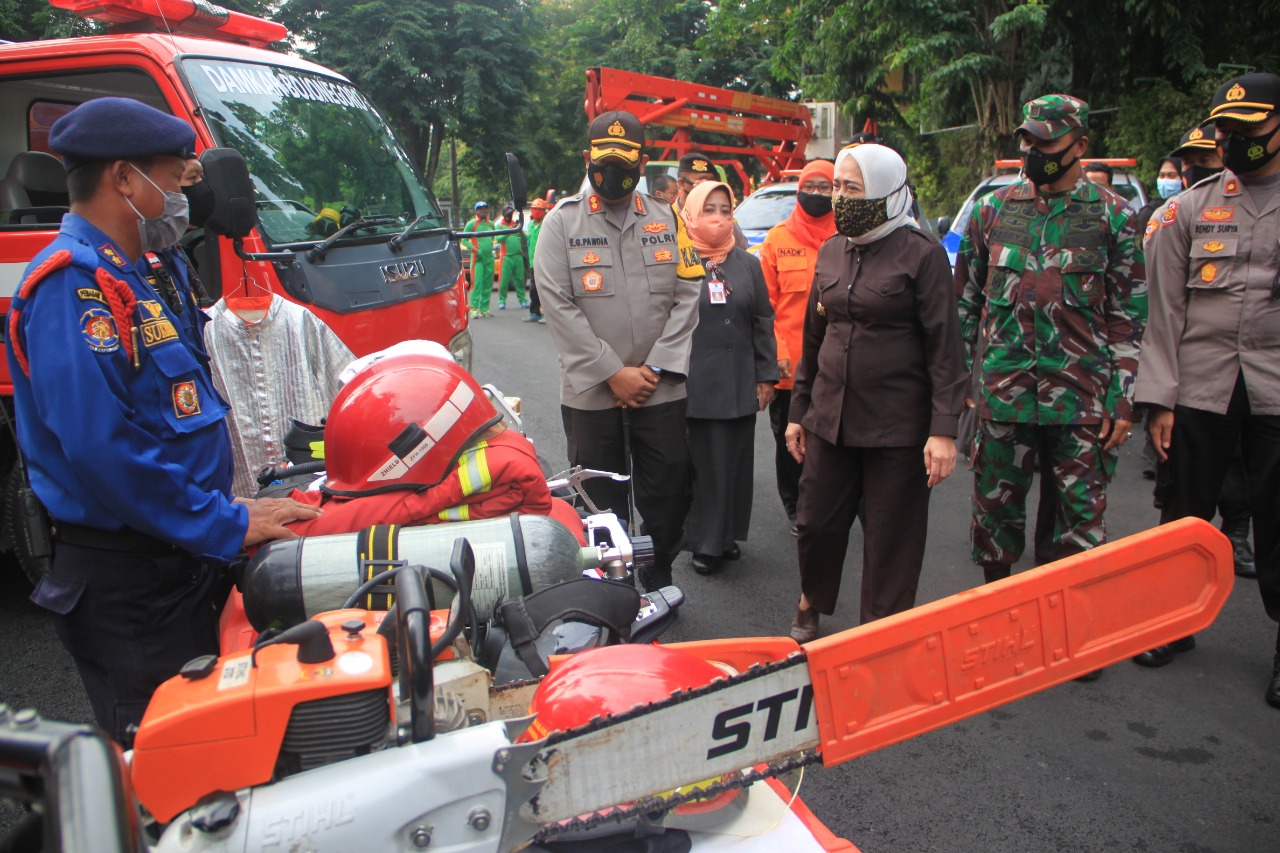 Selesai Apel Kesiapsiagaan Dan Gelar Peralatan Penanggulangan Bencana dilanjutkan pemeriksaan pasukan dan peralatan penanggulangan bencana.