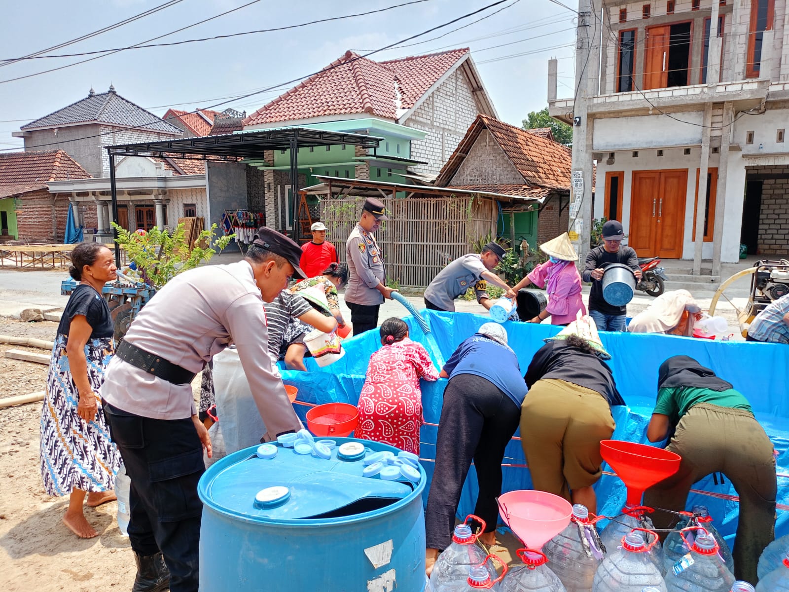 Bantuan air bersih tersebut di pusatkan di penampungan air bersih RT.09/01 dan penampungan air bersih di RT.02/01.” ucap Kapolsek saat giat