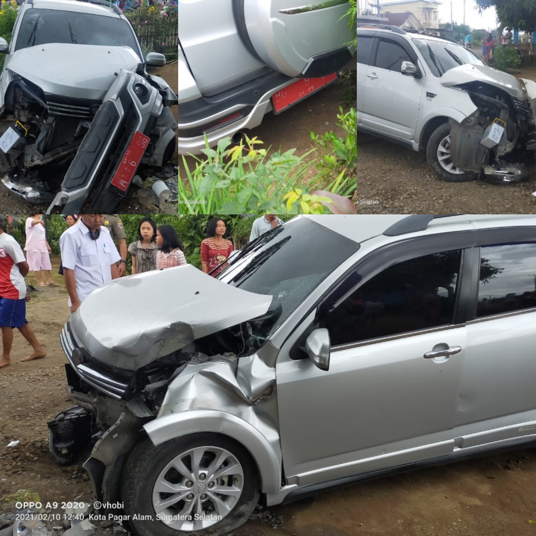 Diduga akibat Ban Mobil pecah Mobil Terios Plat merah dengan kecepatan tinggi menghantam Rumah warga di desa pematang Banggo jalur dua di perkirakan kejadian pukul 12.30 Mobil Terios yang di kendarai oleh pejabat pemerintah kota Pagaralam Agus Asisten satu kini rusak berat tidak bisa di kemudikan lagi.