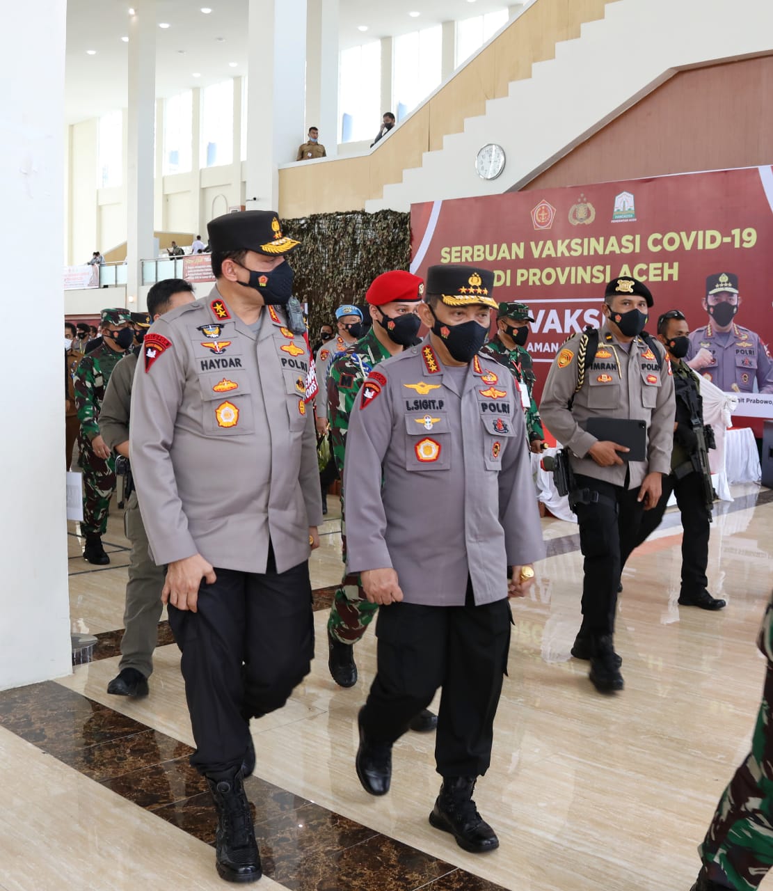 “Kami bersama Panglima TNI datang langsung untuk lakukan dialog dengan seluruh Forkompinda, lembaga adat yang ada di Aceh, Forkopimda di tingkat daerah dan seluruh stakeholders yang ada. Baik dari para tokoh dari pemuka agama. Kami berdiskusi untuk mencari jalan terbaik bagaimana kita bisa meningkatkan akselerasi percepatan vaksinasi di wilayah Aceh,” kata Sigit dalam arahannya.