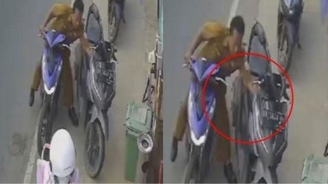 Aksi pencurian yang dilakukan pria berseragam ASN tersebut terlihat sangat singkat.
