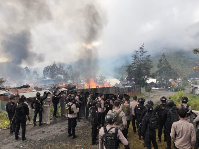 “Aksi saling serang berhasil melerai namun aksi susulan kembali terjadi sehingga terjadi pembakaran rumah milik warga,” jelas Kabid Humas Polda Papua.