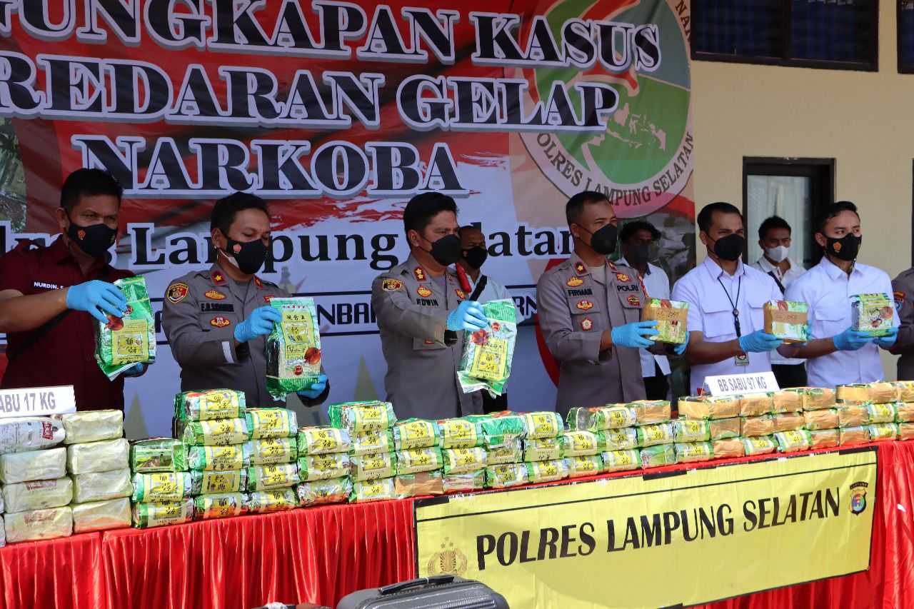Dalam rilis yang dipimpin Kapolres Lampung Selatan AKBP Edwin,Selasa 5 April 2022 di Marko polres setempat menerangkan, hasil ungkap ini berawal saat tim menangkap dua pengedar beinisial HK dan MAF, di Pelabuhan Bakauheni. Dari keduanya, didapati 3 Gram sabu hasil cungkilan bawaan 35 Kg sabu dari Pekanbaru.