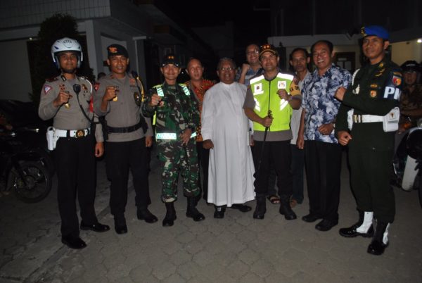 Bojonegoro,Maspolin.id – Amankan perayaan malam tahun baru, Kapolres Bojonegoro AKBP Ary Fadli, SIK., MH., M.Si bersama Dandim 0813 Redinal Dewanto, S.Sos lakuka safari ke Gereja-gereja yang sedang melaksanakan ibadah pergantian tahun baru pada hari Senin (31/12/2018) malam.