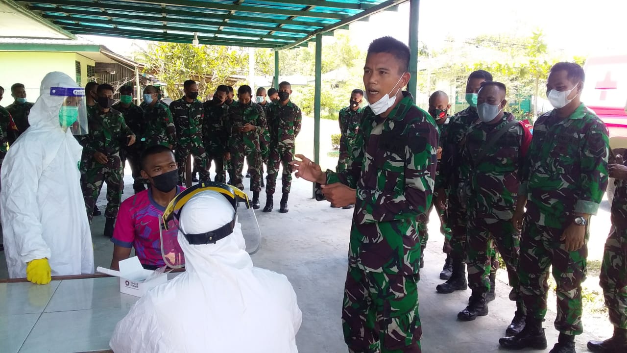 Sambas,maspolin.id- Komando Distrik Militer 1208/Sambas bekerja sama dengan Batalion 645/Gty melaksanakan Kegiatan Penyuluhan Tracer Covid 19, yang bertempat di Garasi Asmil Yonif 645/Gty, Jalan Tabrani, Desa Saing Rambi, Kec. Sambas, Kabupaten Sambas, Rabu (28/7)