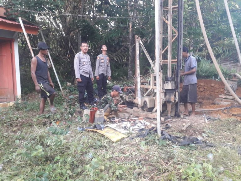 Para Bintara yang turun membantu pembuatan sumur bor di pemukiman SAD, didampingi langsung oleh Kapolsek Air Hitam Iptu Yurizal dan Kepala Desa pematang kabau.