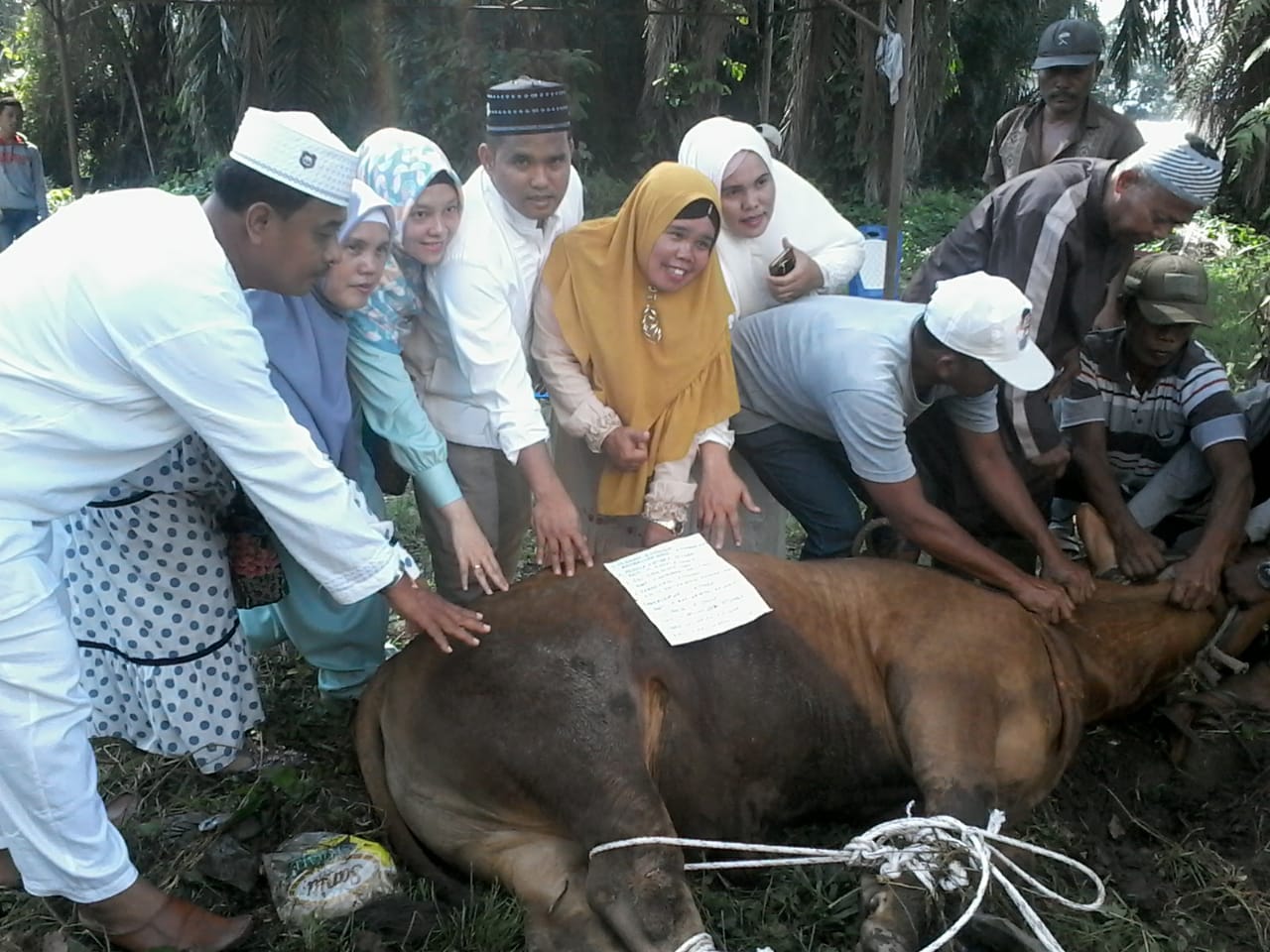 Penyembelihan dipimpin langsung oleh Ustad Mawardi dan disaksikan oleh seluruh keluarga di kediamannya, Jalan HT Rizal Nurdin Kelurahan Batang Terap Kecamatan Perbaungan, Minggu (11/8).