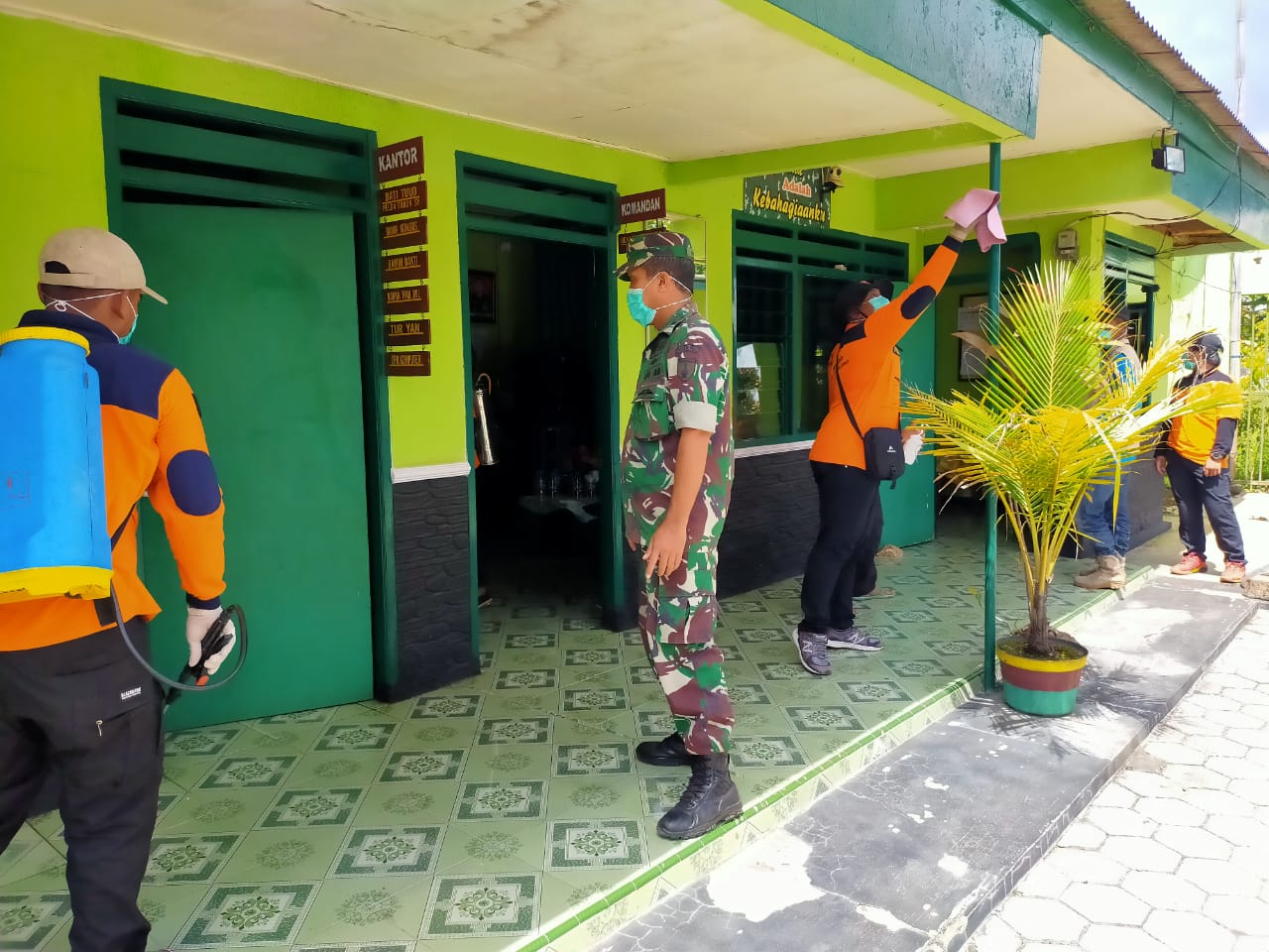 “Penyemprotan Disfenktan lanjut Benny, dimulai dari pintu masuk ke Musala, halaman, dan dilanjutkan ke ruangan-ruangan termasuk kamar mandi, dan perumahan”, ucap Danramil Larangan.