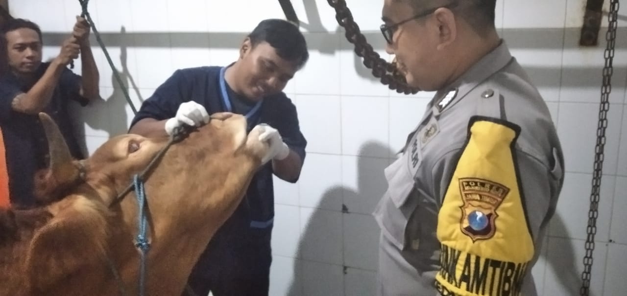 Pada hari itu juga UPT RPH telah melaksanakan pemotongan hewan ternak sapi jenis Limousine sebanyak 4 ekor dengan hasil cek kesehatan Dokter Hewan UPT RPH yang menyatakan hewan ternak dalam keadaan sehat dan tidak terjangkit wabah PMK.