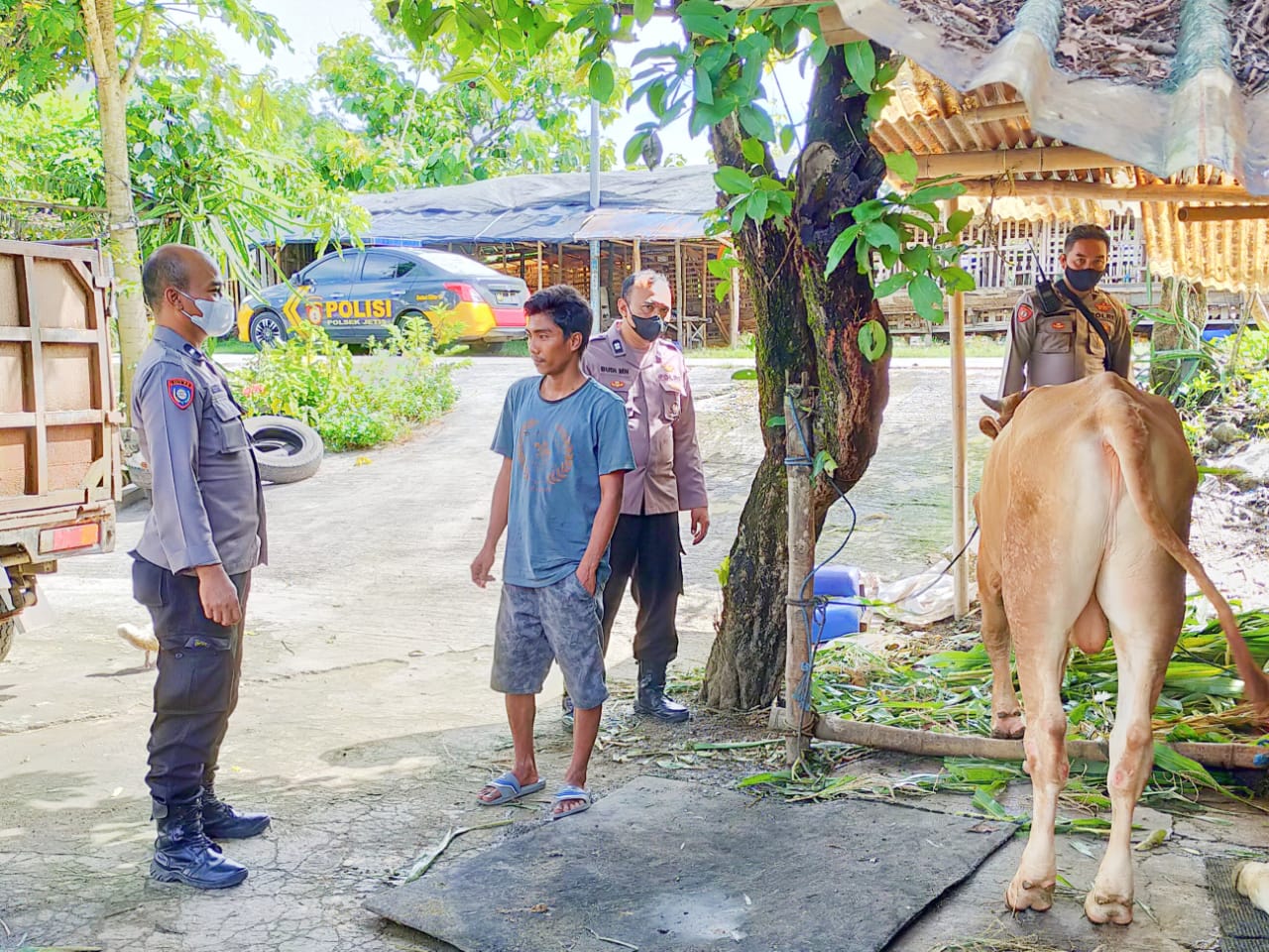 maspolin.id, Mojokerto – Menjelang Hari Raya Idul Qurban Petugas Patroli Polsek Jetis Polresta Mojokerto rutin melaksanakan monitoring pengecekan Hewan ternak di beberapa Peternak Sapi di Mojokerto Raya Hal Tersebut Dilaksanakan Guna mengantisipasi penyebaran wabah Penyakit Mulut dan Kuku (PMK) di Mojokerto Raya, Kamis (23/06/22)