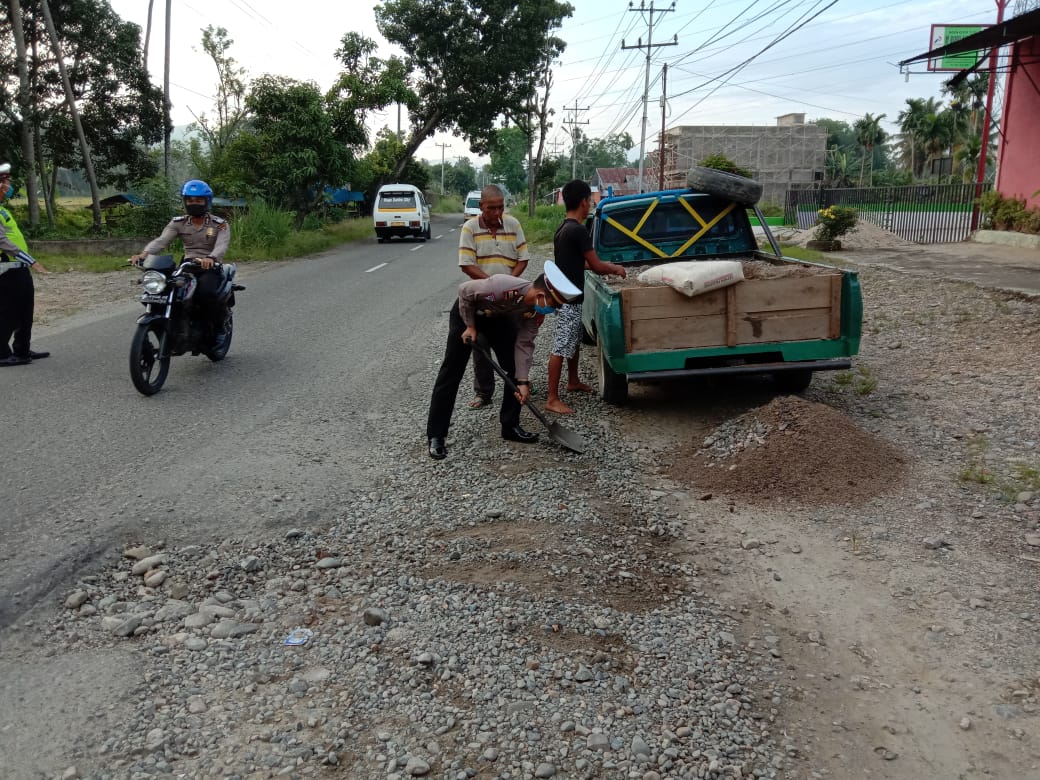 MASPOLIN || MADINA – Kapolres Madina Akbp Horas Tua Silalahi, S.I.K, M.Si melalui personil satuan lalu lintas Polres Madina dibawah pimpinan Akp Septian Dwi Rianto, S.H, S.I.K, pada hari senin tanggal 13 April 2020 sekira pukul 07.00 wib melaksanakan kegiatan menutup lubang pada badan jalan seputaran Kec. Panyabungan Kab. Mandailing Natal.