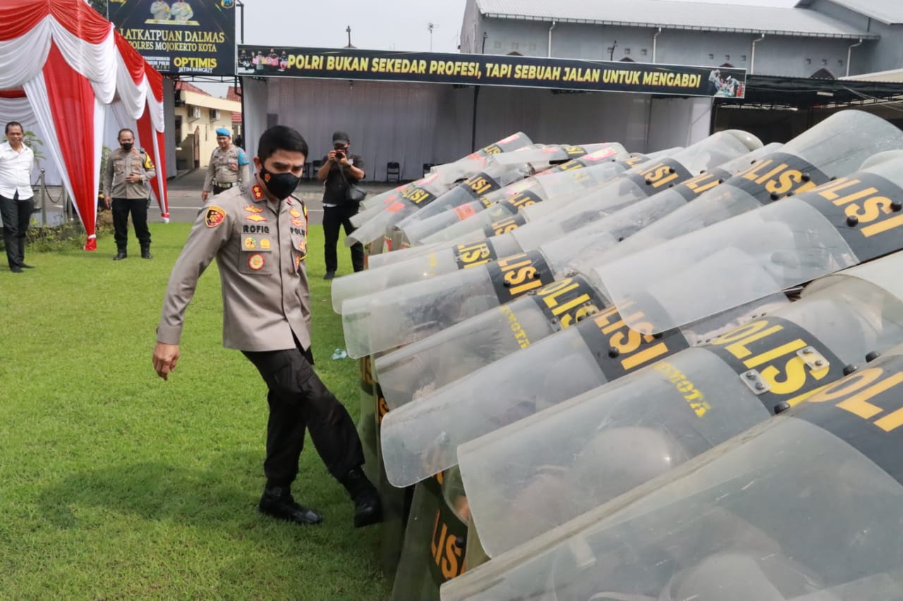 Untuk mencegah hal itu, Polisi dibekali cara-cara untuk mengendalikan massa. Antisipasi tersebut juga seiring dengan banyaknya aksi unjuk rasa di wilayah Hukum Polresta Mojokerto.