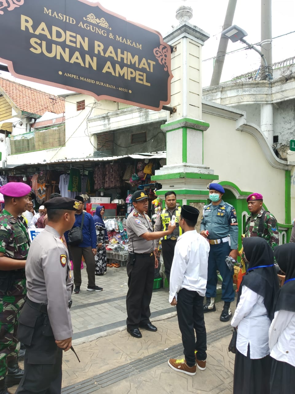 Surabaya,Maspolin.id – Menyikapi sekaligus mengantisipasi penyebaran covid-19 atau virus corona, Sinergitas TNI Polri Surabaya menggelar aksi bersih-bersih peduli lingkungan di Tempat keramaian seperti di Pasar Atom, Stasiun Surabaya Kota dan Pasar Kawasan Makam Sunan Ampel, ” Sabtu (14/3).