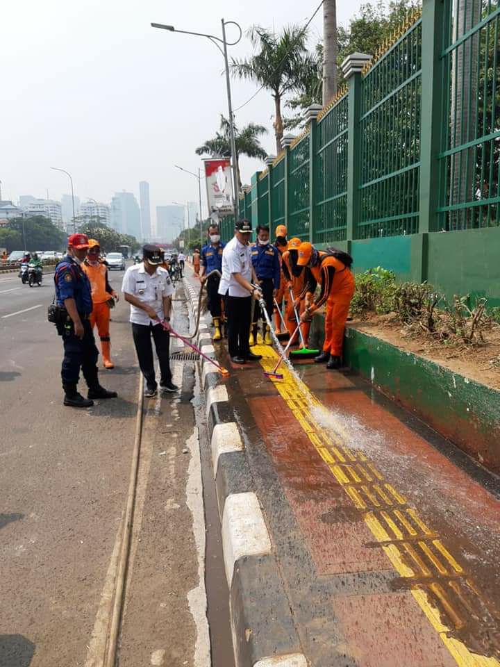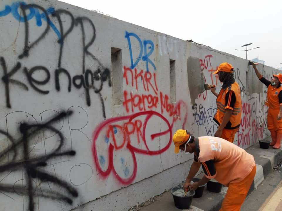Jakarta, maspolin.id. – Aparat Pemprov DKI Jakarta, mulai membersihkan sisa-sisa aksi vandalisme di sekitar Gedung DPR RI dan kawasan Senayan, Jakarta. (25/09/19).