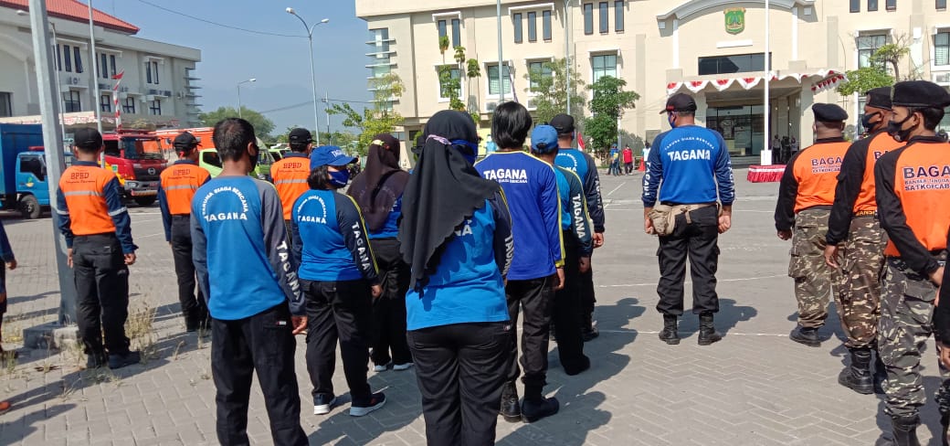 Kalaksa BPBD kab. Pasuruan, Tectona Jati KHM mengatakan, “Betul mas, pagi tadi pukul 07.00 wib di lapangan Dinas Pendidikan komplek perkantoran Raci kec. Bangil Pasuruan, diadakan apel bersama kesiapsiagaan penanggulangan bencana. Dengan diikuti oleh TNI, Polri, BPBD, Dinsos, Dinkes, Dinas Perkim, Dinas Bina Marga, Dinas SDA, Relawan, Tagana, Bagana dan lain-lain” jelasnya .