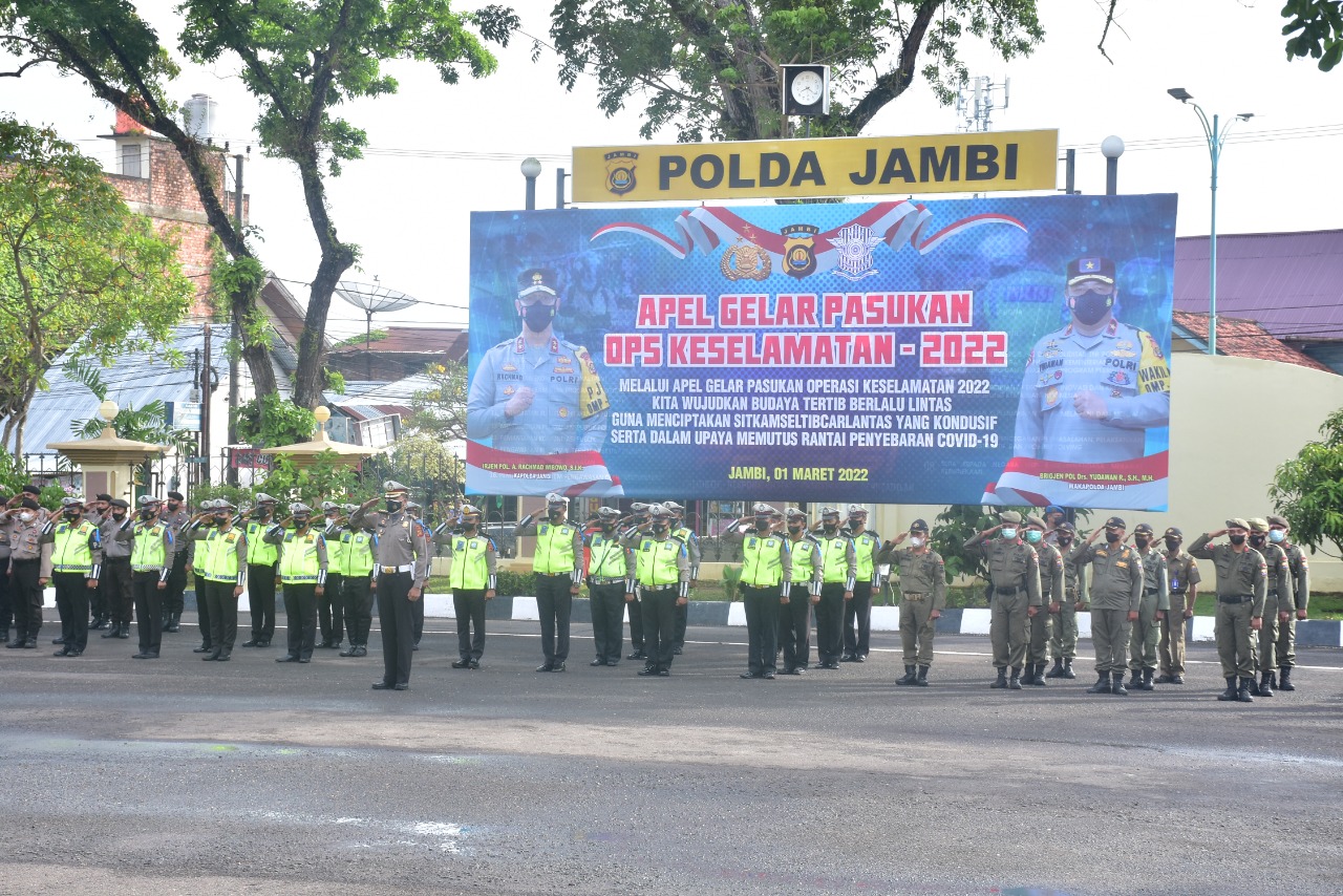 Jambi – Maspolin.id // Kepolisian Daerah Jambi menggelar apel gelar pasukan operasi keselamatan tahun 2022 bertempat di Lapangan hitam Mapolda Jambi, Selasa (01/03/22).