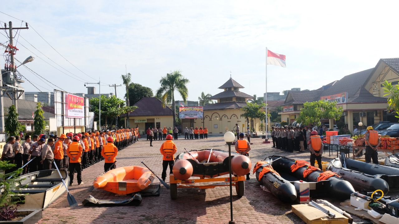 Semua Peralatan Penanganan Bencana Alam turut di hadirkan Seperti Alat bantu Penafasan, dua Unit Perahu Perorangan Sat Sat Sabhara, dua Unit Perahu Karet Sat Sabhara, Satu Unit Perahu Karet Pol Airud, dua buah Tenda Sat Sabhara, Tiga Unit Perahu Karet BPBD, Tiga Tenda dan Pelampung BPBD sebanyak 40 buah.