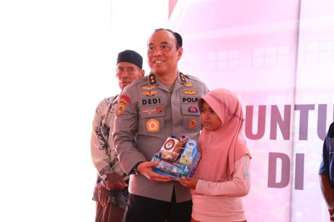Irjen Dedi kemudian langsung menemui para orang tua dan berbincang santai sembari menghibur para pengungsi dengan candaan ringan untuk sejenak melegakan perasaan warga dan mengurangi beban yang dirasakan warga dengan bantuan yang diberikan.