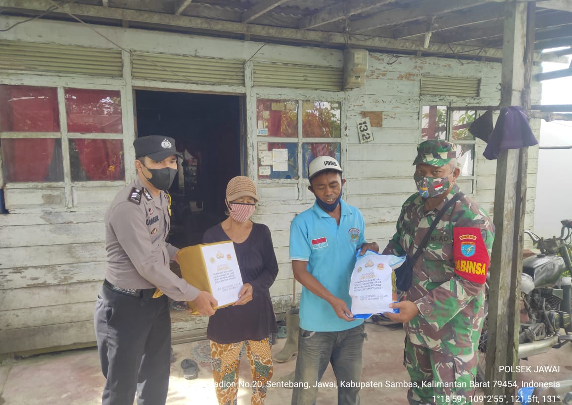 Sambas,maspolin.id- Anggota Koramil 1208-04/Jawai melaksanakan pendampingan Polsek Jawai Selatan dalam rangka penyaluran Bantuan Sosial Peduli Covid-19 dari Pasis Sesko AU A.58, bertempat di Dusun Selatan Rt.018 Rw. 006 Desa Sentebang Kec. Jawai dan di Dusun Orde Baru Rt.02 Rw.01 Desa Matang Terap Kec. Jawai Selatan Selatan, Kab. Sambas. Jumat (11-6-2021)