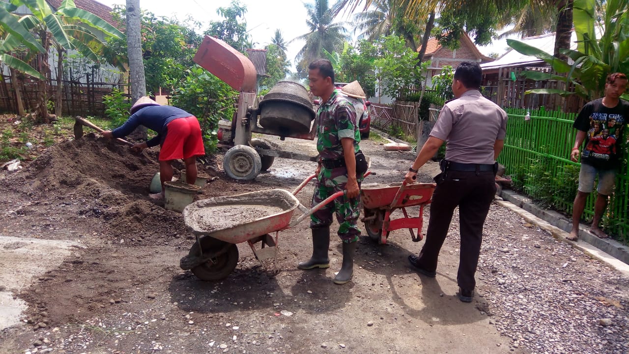 Cilacap, Maspolin.id – Babinsa Kalijaran Koramil 07/Maos, Serma Darsono bersama Bhabinkamtibmas membantu warga kerja bakti pengecoran jalan desa di Desa Kalijaran, Kecamatan Maos, Cilacap, Jawa Tengah, Senin (11/2/2019).