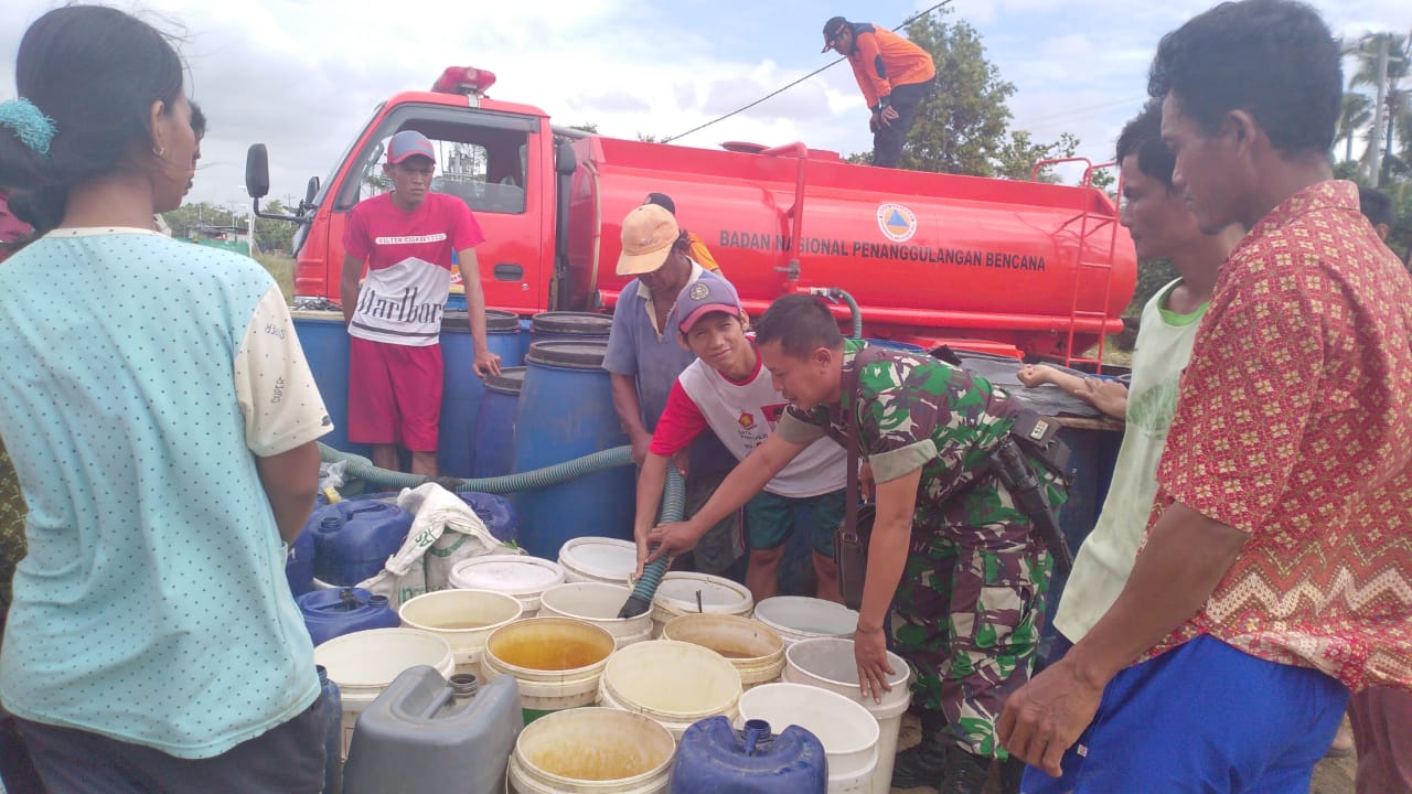 Cilacap, Maspolin.id – Babinsa Babakan, Koramil 09/Kawunganten Sertu Mulyanto, mendampingi BPBD Cilacap dalam mendistribusikan air bersih kepada warga Dusun Purwosari RT 01 RW 01, Desa Babakan, Kecamatan Kawunganten, Kabupaten Cilacap, Jawa Tengah, Kamis (13/06/2019).