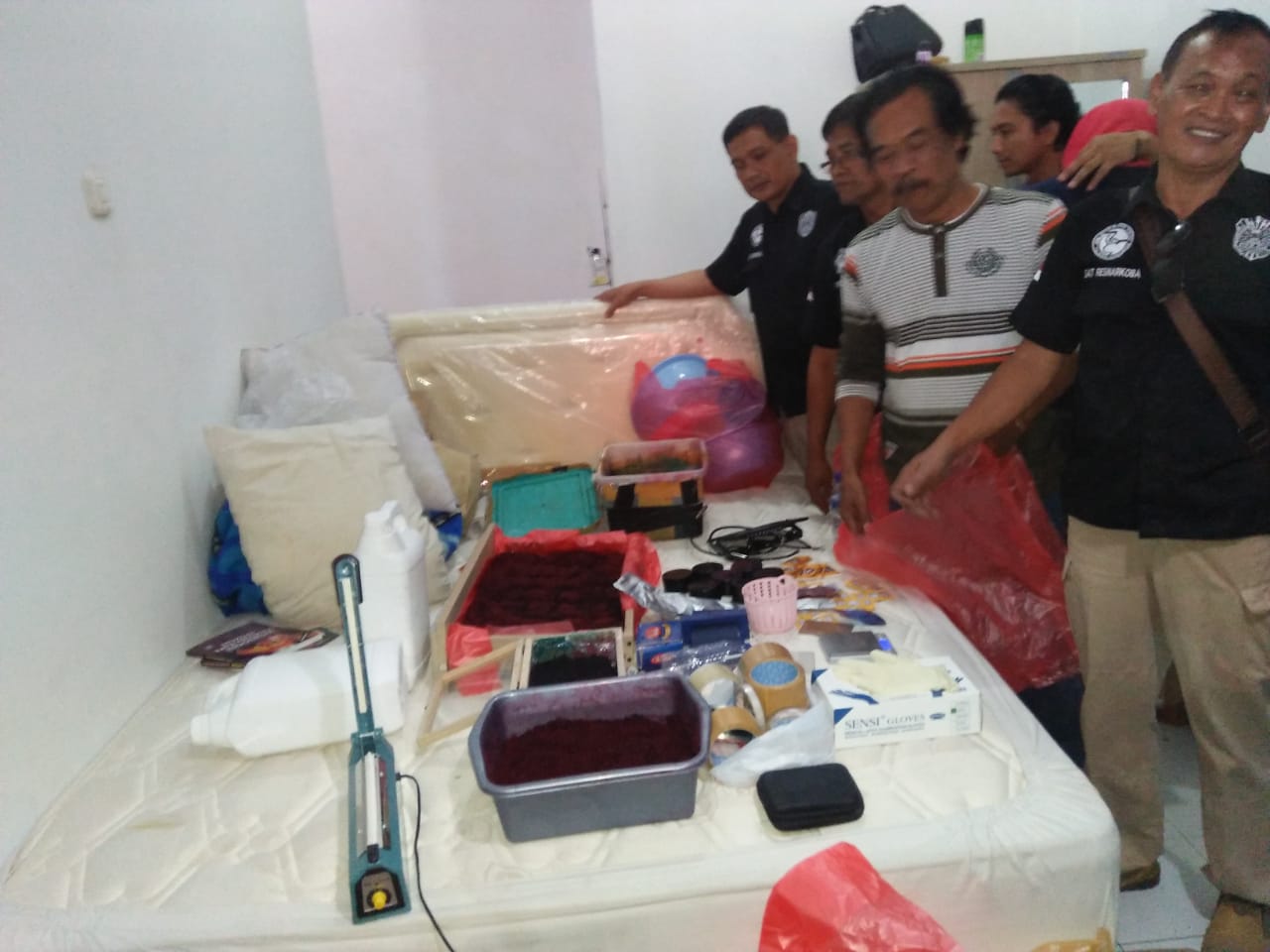Penggerebekan dipimpin oleh Kapolres Surakarta AKBP A NDY dan Kanit Sat Narkoba Polres Surakarta, didalam rumah kosnya ternyata pelaku sedang meracik barang haram tersebut,