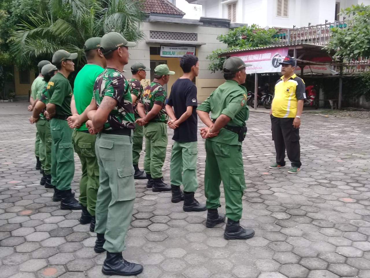 Demi melatih kedisiplinan Linmas, Sertu Joko Riyanto bersama Babinkamtibmas memberikan pelatihan PBB kepada Linmas di Kelurahan binaan.