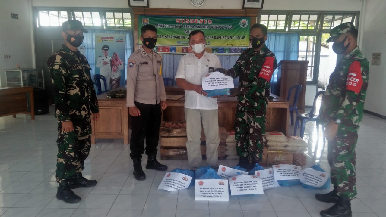 “Inilah bentuk kepedulian anggota TNI Polri Desa Karangrena terhadap saudara kita yang saat ini terdampak pandemi covid 19 dan khususnya warga yang sedang menjalani isolasi mandiri,” jelasnya.