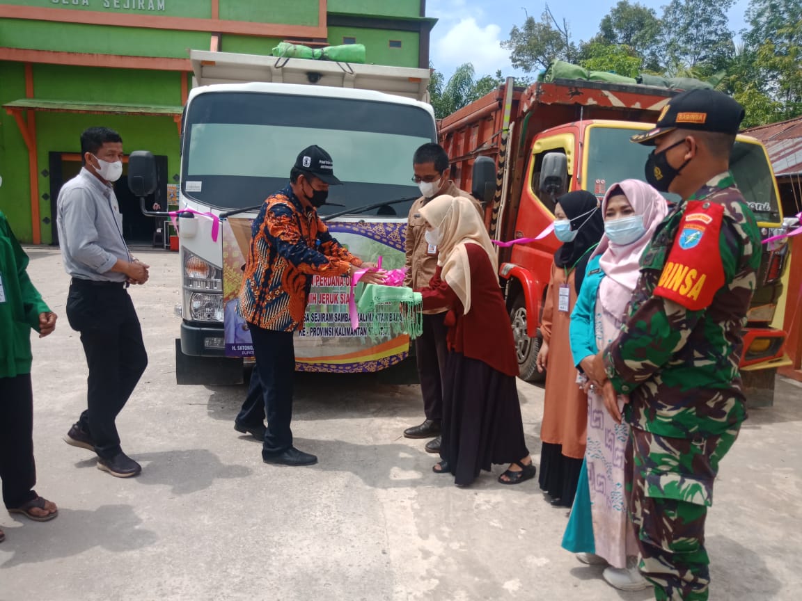 Sambas – Maapolin.id // Babinsa kawal pelaksanaan kegiatan “Pelepasan Pengiriman Benih Jeruk Sejiram Sambas ke Kalimantan Selatan” yang bertempat dihalaman gedung Olahraga Desa Sejiram Kec. Tebas, Kab. Sambas? Kemaren