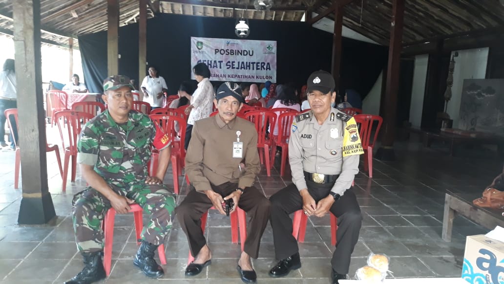 Serka Teguh Susanto Babinsa Kepatihan Kulon Koramil 04/Jebres Kodim 0735/Ska bersama Dinas kesehatan UPT Puskesmas Purwodiningratan melaksanakan cek kesehatan berkala di Posbindu sehat sejahtera sanggar kemasan Kepatihan Kulon RT 02 RW 02 Jebres Surakarta. Sabtu 02 02 2019.