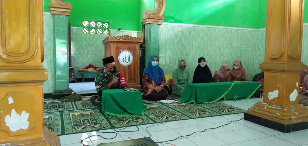 Maspolin.id, Cilacap – Babinsa Koramil 08/Adipala Peltu Wahidin memberikan materi wawasan kebangsaan (Wasbang) 4 (Empat) Pilar Kebangsaan kepada peserta safari Ramadhan yang di selenggarakan oleh penggerak PKK Kecamatan Adipala bertempat di Masjid Al Qomari yang berlokasi di RT 03/03 Desa Karangsari, Kecamatan Adipala, Kabupaten Cilacap, Kamis (15/4/21).